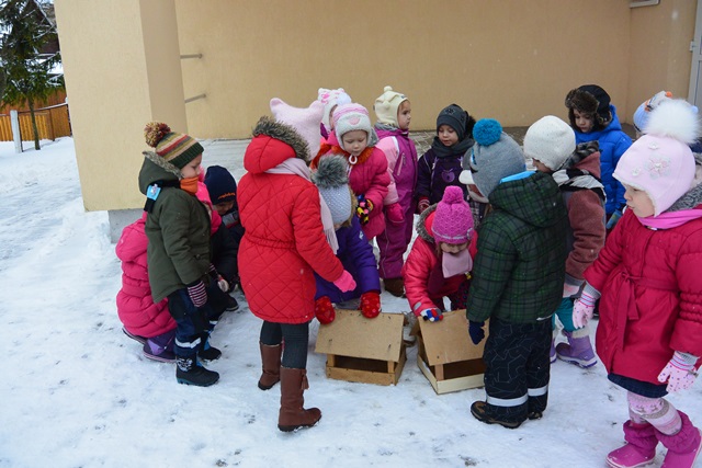 Lauke spaudžia stiprus šaltukas. Lopšelyje – darželyje gera, šilta, smagu, ant stalų garuoja skanūs, karšti pietūs. O kas pasirūpins paukštelių pilvukais... Ogi mūsų rūpestingieji darželinukai! „Šaltinėlio“ ir „Linelių“ grupių vaikučiai nutarė pasirūpinti paukšteliais. Lopšelio – darželio kieme ant medžių šakų pakabino naujas lesyklėles, į kurias pribėrė trupinėlių. Ilgai vaikai stebėjo atskrendančius į jų lesyklas paukštelius, mokėsi juos atpažinti ir džiaugėsi padarytu prasmingu darbu. Pavasarį bus smagu stebėti čiulbančius laimingus paukštelius, dėkojančius vaikams už sočią žiemą.