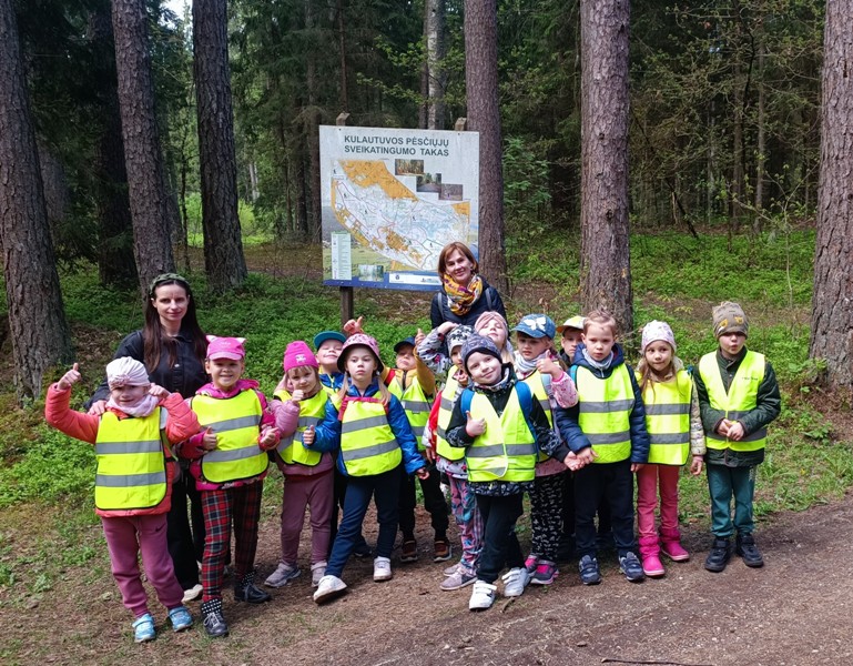 Saulėtą gegužės 7-osios rytą žvaliai nusiteikusi “Rugelių” grupės komanda atvyko į kvepiantį ir žalią Kulautuvos pušyną, kur pradėjome savo pėsčiųjų žygį Kulautuvos sveikatingumo takais ir takeliais. Keliavome dievų ir deivių slėniu, tyrinėjome mišką, klausėmės paukščių čiulbėjimo, stebėjome mažuosius miško gyventojus, grožėjomės pavasarine gamta. Rytą praleidę aktyviai, į darželį sugrįžome kupini džiugių emocijų, žvalūs ir laimingi. Nuo mažų dienų pajaustas judėjimo džiaugsmas ugdo sveiką gyvenimo būdą!