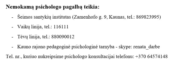 Visą informaciją vaikų tėvams suteiks grupių auklėtojos. Iškilus neaiškumams, skambinkite direktoriaus pavaduotojai ugdymui tel. 8-616-12530
