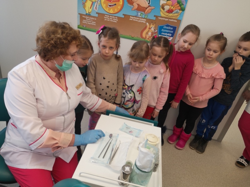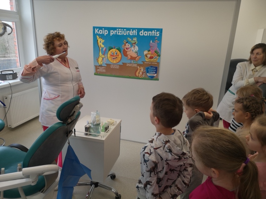 Saulėtą vasario 26-osios rytą kartu su priešmokyklinės „Bitučių“ grupės vaikučiais keliavome į Vilkijos pirminės sveikatos priežiūros centro odontologijos kabinetą, kur mus maloniai pasitiko gydytoja odontologė Danguolė Gurskienė. Gydytoja papasakojo, kaip kiekvienas vaikas turėtų teisingai prižiūrėti savo dantukus, rekomendavo, kaip tinkamai išsirinkti dantų šepetėlį ir dantų pastą, kokio maisto vengti ir ką valgyti, kad dantukai būtų sveiki ir stiprūs, kiek kartų per metus reikėtų apsilankyti pas dantų gydytoją. Vaikai turėjo galimybę susipažinti su odontologo darbu, apžiūrėti odontologijos kabinetą, naudojamas odontologijai reikalingas priemones bei instrumentus, taip pat drąsiausieji išbandė ir paciento kėdę, tuo tarpu gydytoja mielai atsakė į visus vaikams iškilusius klausimus. Gydytoja priminė ir apie vykstančią šiuo metu programą, kuri suteikia galimybę šešiamečių – trylikamečių vaikų krūminius dantis nemokamai padengti specialia medžiaga – silantais, kurie saugo dantis nuo gedimo. Atsisveikindami pažadėjome dar uoliau rūpintis savo dantukais bei reguliariai lankytis odontologijos kabinete. Nuoširdžiai dėkojame gydytojai Danguolei Gurskienei už malonų priėmimą bei įteiktas vaikams atminimo dovanėles. Ačiū Kauno r. Visuomenės sveikatos biurui už padovanotas vaikams dantų pastas bei dantų šepetėlius.