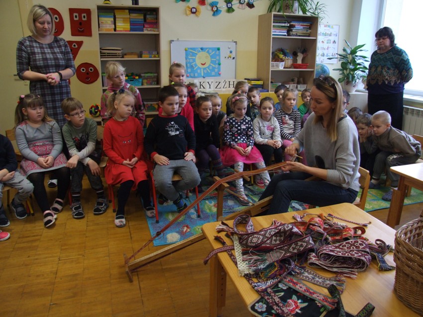 Lopšelyje-darželyje vykdomas projektas ,,Lietuva - Tėvynė mūsų". Viena iš projekto veiklų - supažindinti vaikus su tautine juosta, audėjo amatu. Šiandien vaikučius aplankė tautodailininkė Rita Budrevičienė. Ji atsinešė tikras audimo stakles, pademonstravo vaikams juostos audimo procesą, parodė pačios nuaustas juostas. Vėliau tautines juostas audė patys vaikai. Kaip jiems sekėsi - užfiksuota nuotraukose. Dėkojame poniai Ritai už vaikams padovanotas džiugias emocijas, o auklėtojoms už organizuotą renginį.