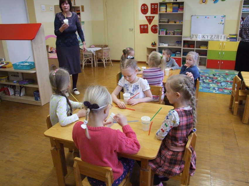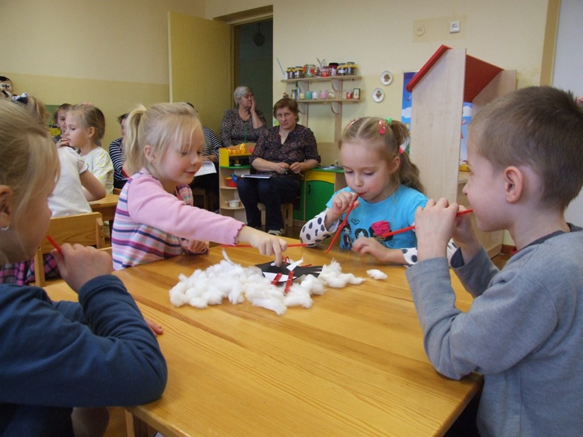 Sausio 30 dieną įvyko paskutinė projekto ,,Logopedinės pratybos kitaip‘‘ veikla ,,Linksmosios kūrybinės dirbtuvėlės‘‘. Veikla vyko priešmokyklinio ugdymo grupėje ,,Rugeliai“. Vaikai kartu su logopede darė artikuliacines mankštas, smulkiosios motorikos lavinimo pratimus, pūtimo pratimus, žaidė žaidimus, lavinančius foneminę klausą, girdimąjį suvokimą. Žaidžiant, atliekant pūtimo pratimus, buvo naudojami kokteilių šiaudeliai. Veiklos pabaigoje vaikučiai lavino(si) kūrybinius gebėjimus, lankstydami iš kokteilių šiaudelių gėlytes. Veikla pavyko, nes vaikams buvo įdomu, jie patyrė daug džiugių emocijų ir įsitikino, kad smagu žaisti ne tik su žaislais. Nuotaika buvo puiki.