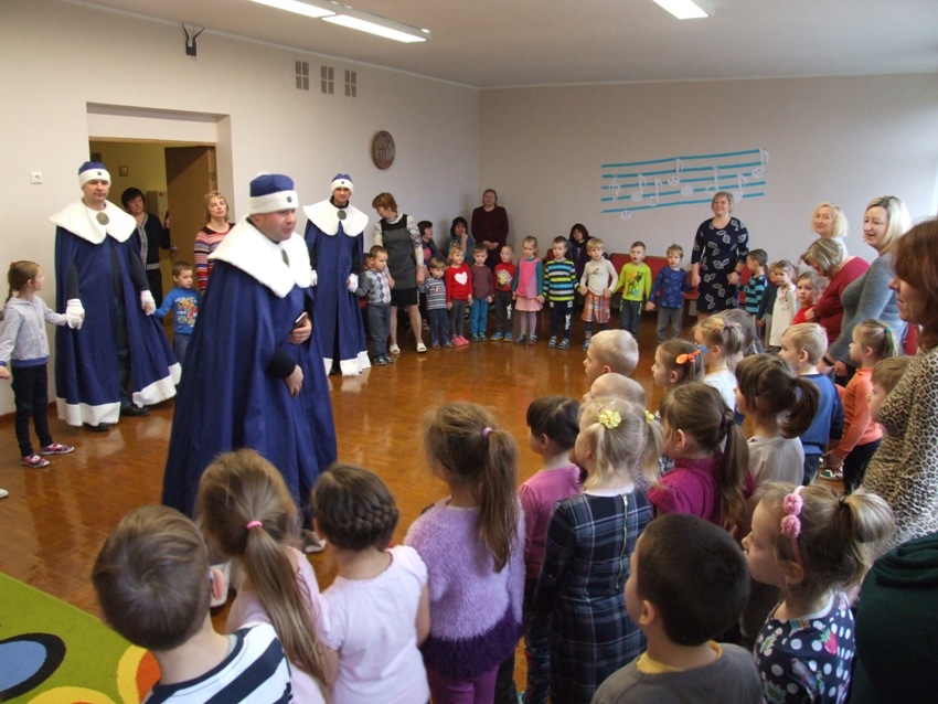 Karaliai papasakojo, jog einantys aplankyti tolimoje šalyje gimusio kūdikėlio Jėzaus ir nešantys jam dovanų – aukso, miros ir smilkalų. Karaliai linkėjo sveikatos, laimės ir džiaugsmo, dalino dovanas, šoko ir dainavo kartu su visa darželio bendruomene.Vaikučiai atidžiai klausėsi Karalių pamokymų, palinkėjimų, nupuošė eglę, nuoširdžiai tarė jai padėkos žodžius ir atsisveikino iki kitų metų.